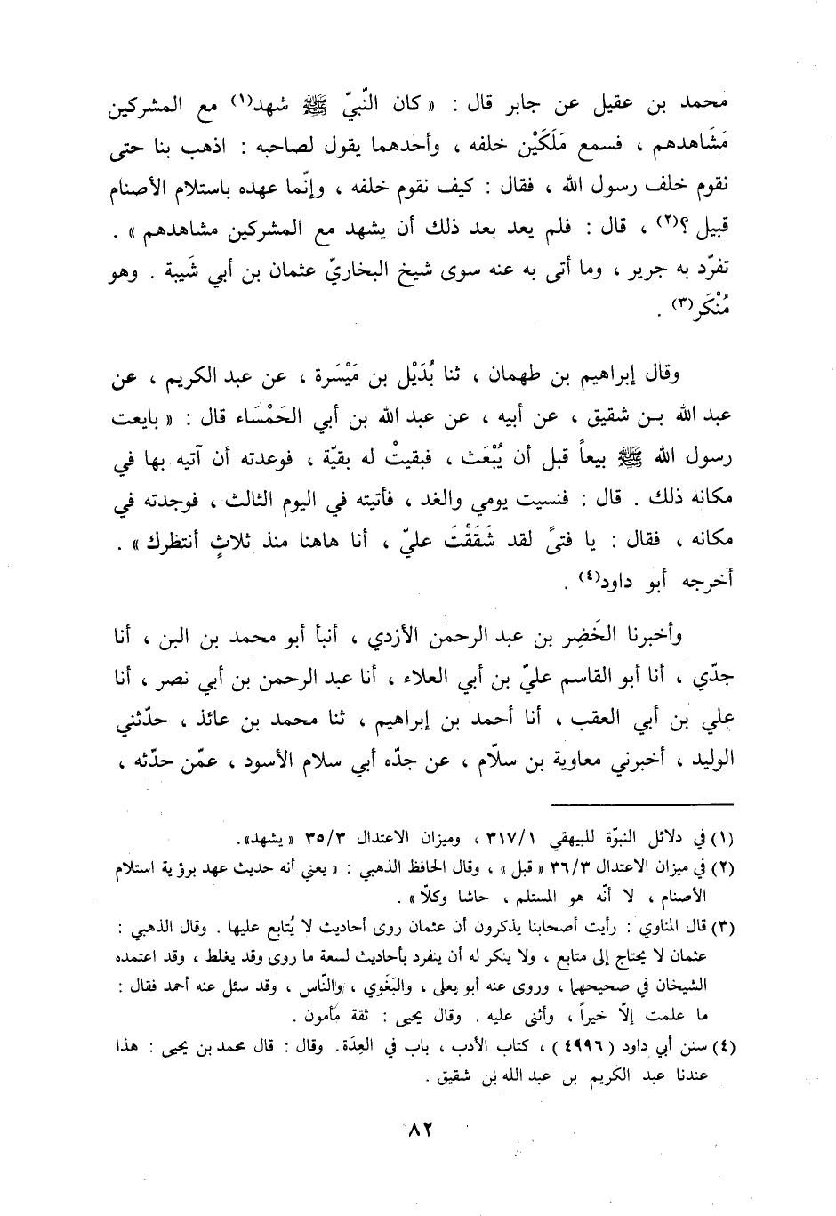 وَقَالَ حَمَّادٌ أَيْضًا، عَنْ ثَابِتٍ، عَنْ أَنَسٍ رَضِيَ اللَّهُ عَنْهُ، أَنّ رَسُولَ اللَّهِ صَلَّى اللَّهُ عَلَيْهِ وَسَلَّمَ شَاوَرَ حِينَ بَلَغَهُ إِقْبَالُ أَبِي سُفْيَانَ. فَتَكَلَّمَ أَبُو بَكْرٍ فَأَعْرَضَ عَنْهُ، ثُمَّ تَكَلَّمَ عُمَرُ فَأَعْرَضَ عَنْهُ. فَقَامَ سَعْدُ بْنُ عُبَادَةَ- كَذَا قَالَ، وَالْمَعْرُوفُ سَعْدُ بْنُ مُعَاذٍ- فَقَالَ: إِيَّانَا تُرِيدُ يَا رَسُولَ اللَّهِ؟ وَالَّذِي نَفْسِي بِيَدِهِ لَوْ أَمَرْتَنَا أَنْ نُخِيضَهَا الْبَحْرَ لأَخَضْنَاهَا. وَلَوْ أَمَرْتَنَا أَنْ نَضْرِبَ أَكْبَادَهَا إِلَى بَرْكِ الْغِمَادِ [3] لَفَعَلْنَا. قَالَ: