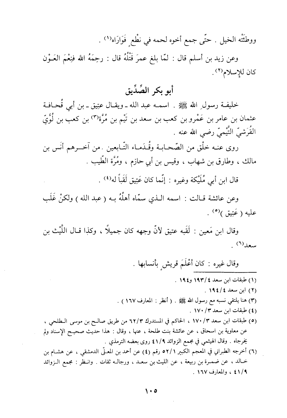 [6] أخرجه الطبراني في المعجم الكبير 1/ 52 رقم (4) عن أحمد بن المعلّى الدمشقيّ، عن هشام بن خالد، عن ضمرة بن ربيعة، عن الليث بن سعد، ورجاله ثقات. وانظر: مجمع الزوائد 9/ 41، والمعارف 167.