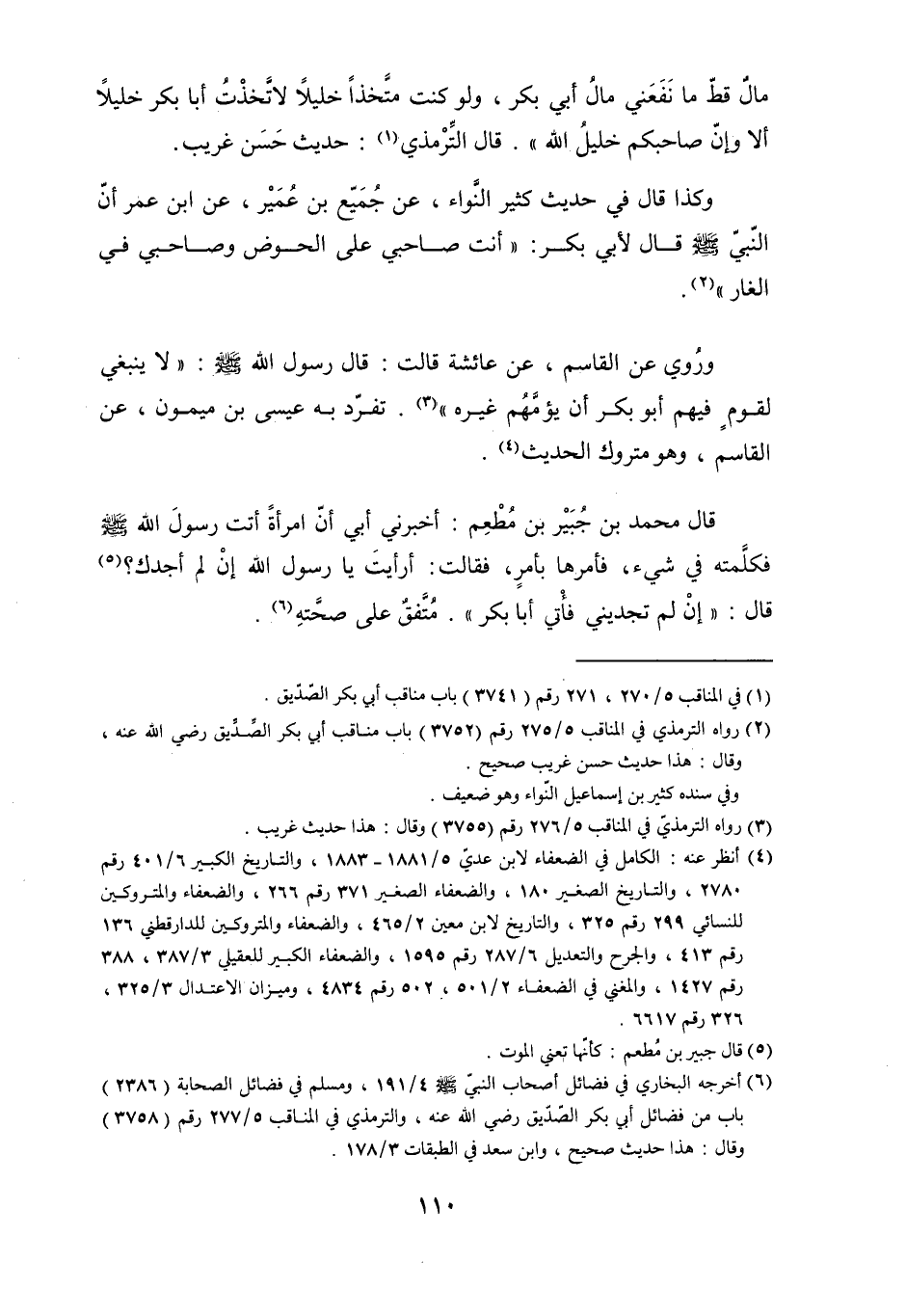 [1] في المناقب 5/ 270، 271 رقم (3741) باب مناقب أبي بكر الصّدّيق.