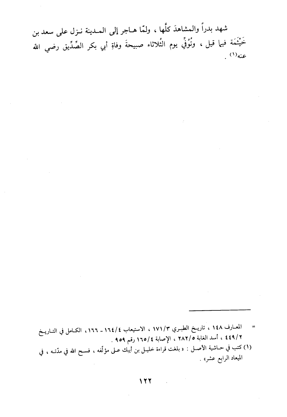 [ () ] المعارف 148، تاريخ الطبري 3/ 171، الاستيعاب 4/ 164- 166، الكامل في التاريخ 2/ 449، أسد الغابة 5/ 282، الإصابة 4/ 165 رقم 959.