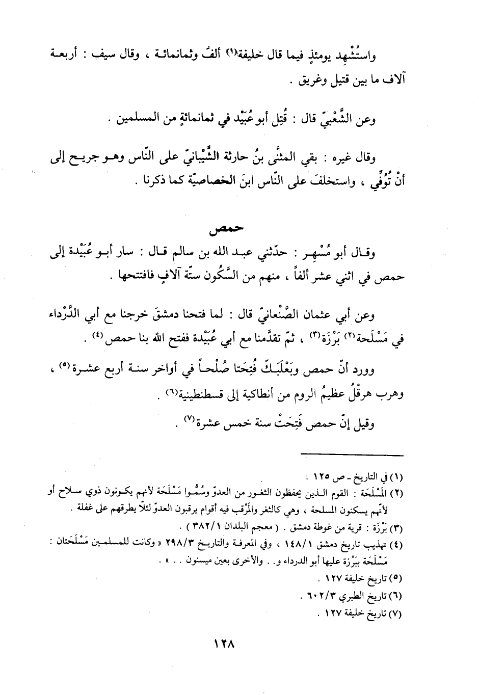 [4] تهذيب تاريخ دمشق 1/ 148، وفي المعرفة والتاريخ 3/ 298 «وكانت للمسلمين مسلحتان: