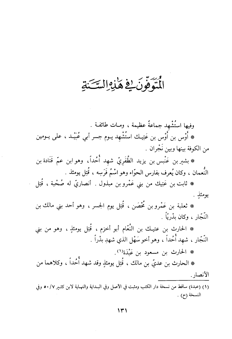 [1] (عبدة) ساقط من نسخة دار الكتب ومثبت في الأصل وفي البداية والنهاية لابن كثير 7/ 50 وفي النسخة (ح) .