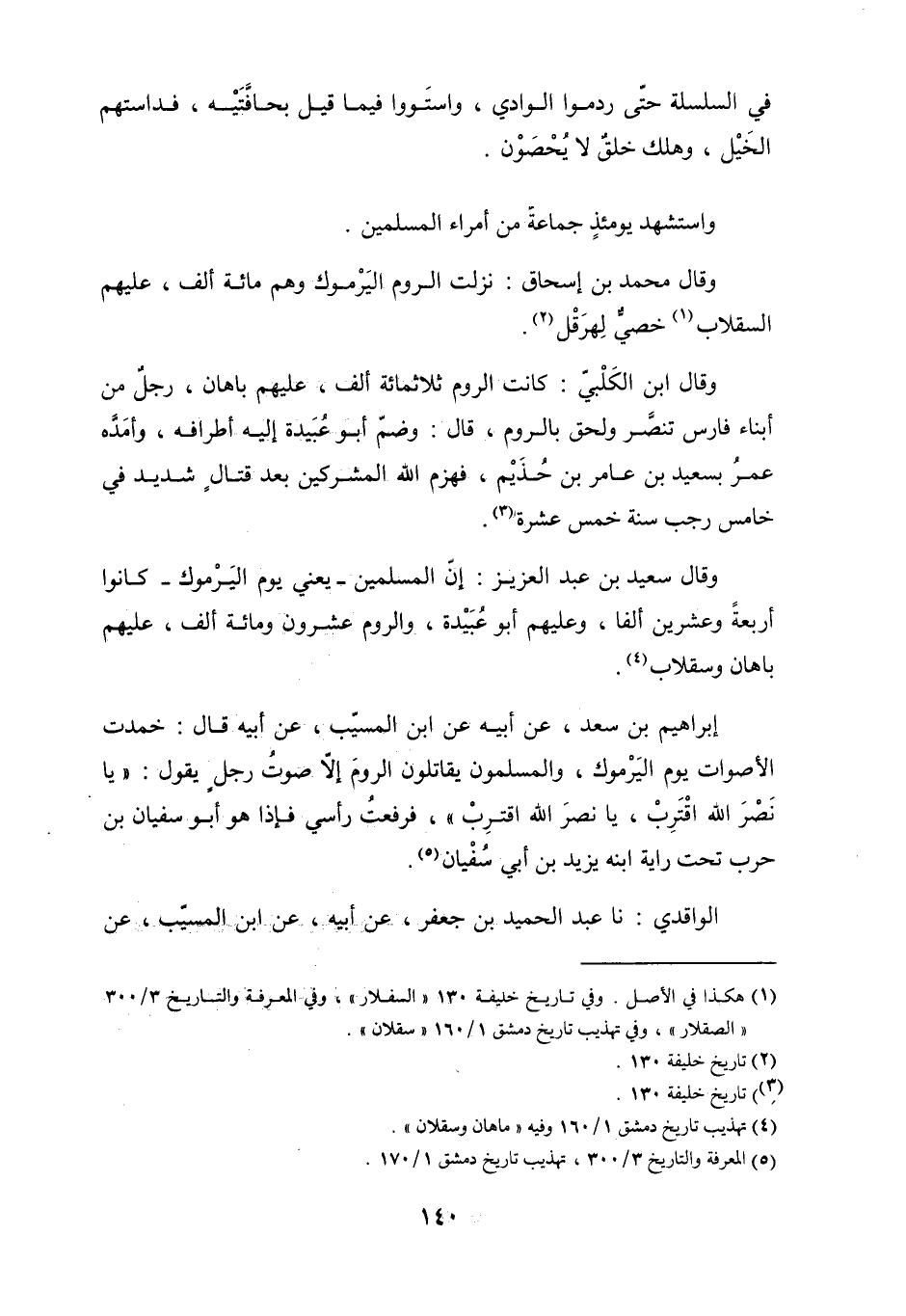 وَقَالَ سعيد بْن عبد العزيز: إنّ المُسْلِمين- يعني يوم اليّرْموك- كانوا أربعةً وعشرين ألفًا، وعليهم أَبُو عبيدة، والروم عشرون ومائة ألف، عليهم باهان وسقلاب [4] .