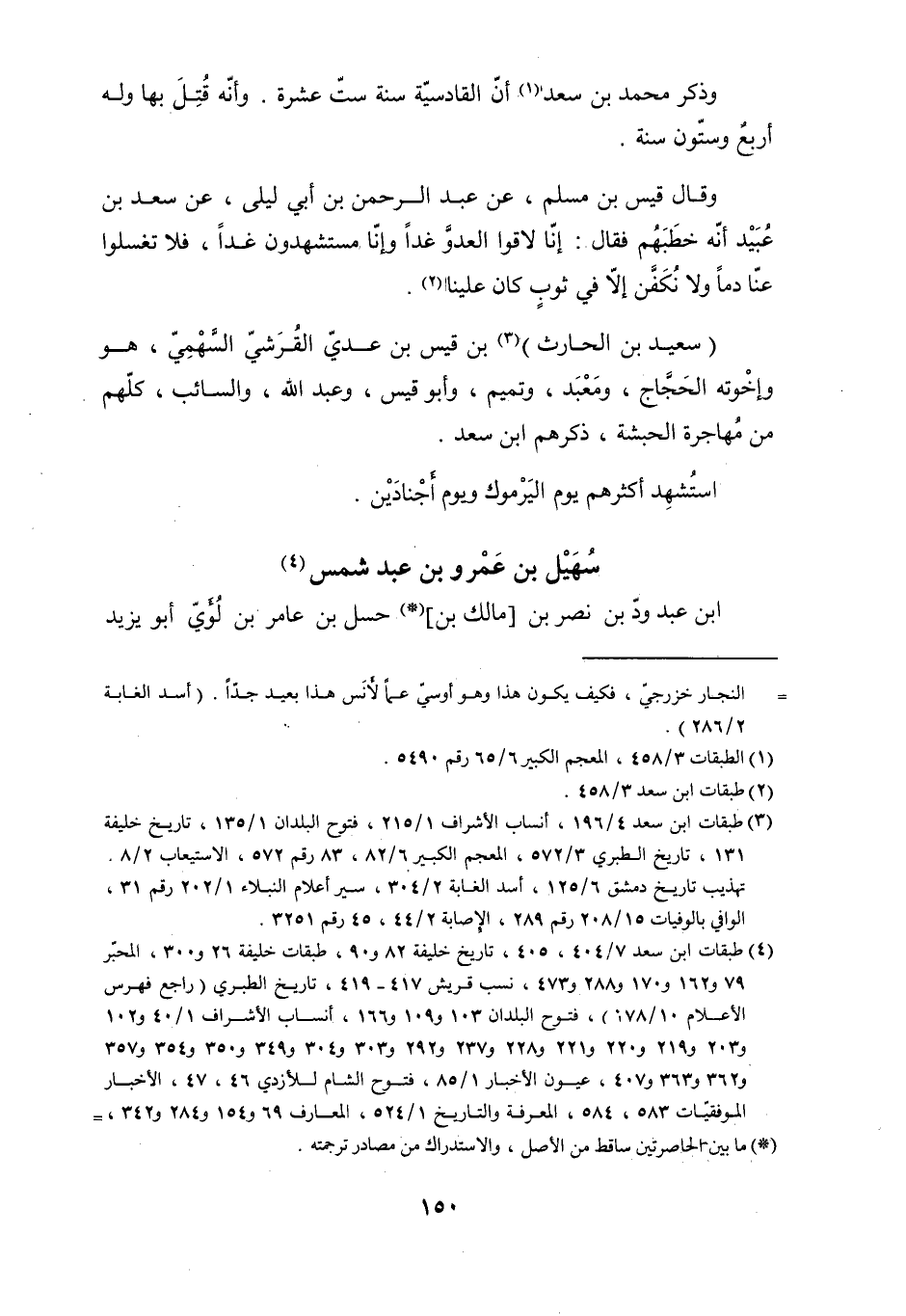 [3] طبقات ابن سعد 4/ 196، أنساب الأشراف 1/ 215، فتوح البلدان 1/ 135، تاريخ خليفة 131، تاريخ الطبري 3/ 572، المعجم الكبير 6/ 82، 83 رقم 572، الاستيعاب 2/ 8 تهذيب تاريخ دمشق 6/ 125، أسد الغابة 2/ 304، سير أعلام النبلاء 2/ 202 رقم 202، رقم 31، الوافي بالوفيات 15/ 208 رقم 289، الإصابة 2/ 44، 45 رقم 3251.