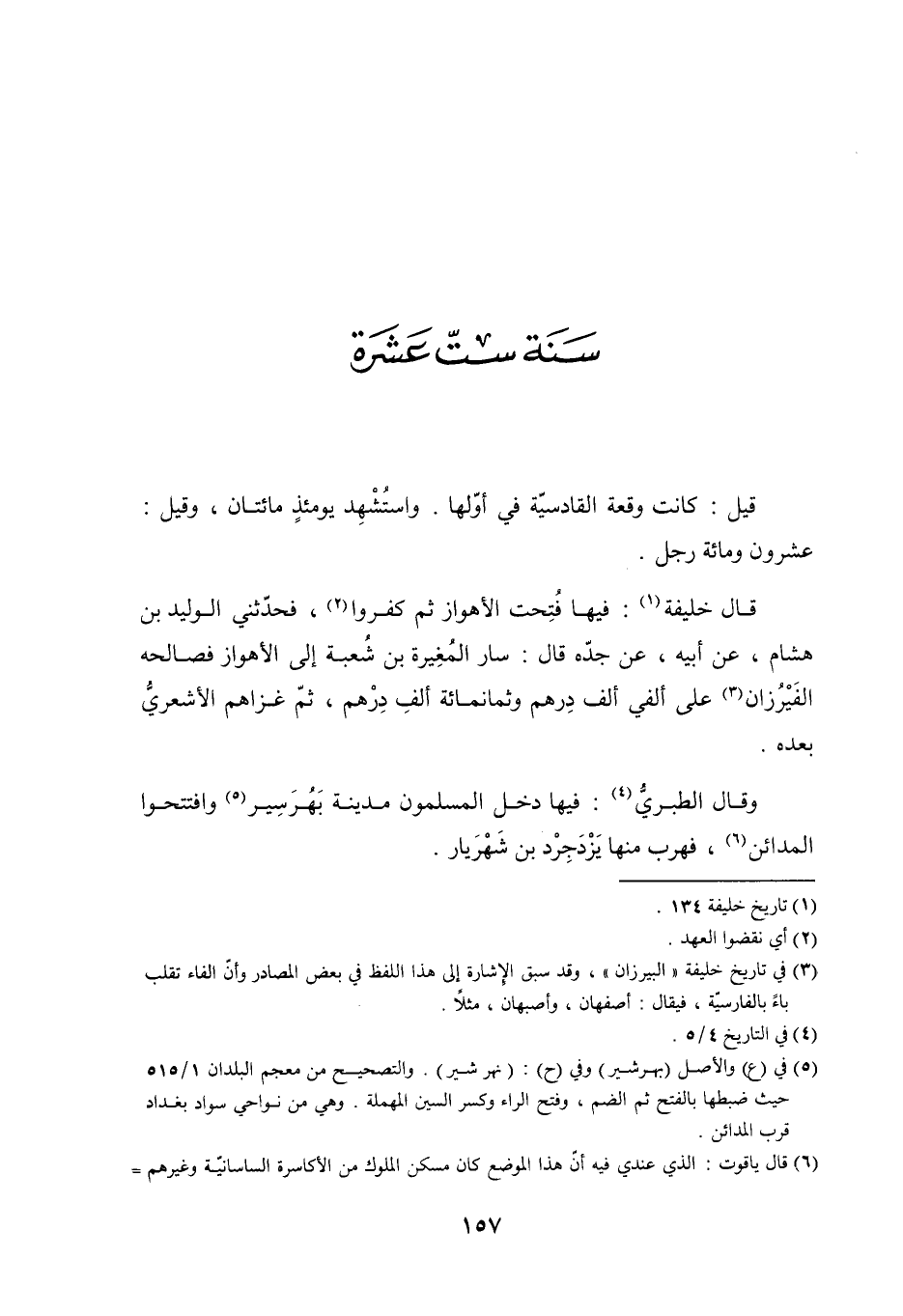 وَقَالَ الطبريُّ [4] : فيها دخل المسلمون مدينة بَهُرَسِير [5] وافتتحوا المدائن [6] ، فهرب منها يزدجرد بن شهريار.