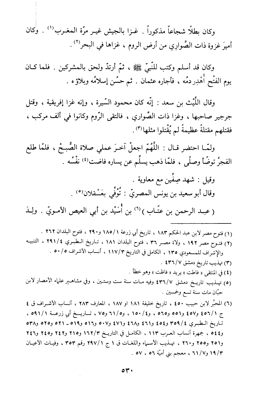 [2] فتوح مصر 192، ولاة مصر 36، فتوح البلدان 181، تاريخ الطبري 4/ 291، التنبيه والإشراف للمسعوديّ 135، الكامل في التاريخ 3/ 117، أنساب الأشراف 5/ 50.