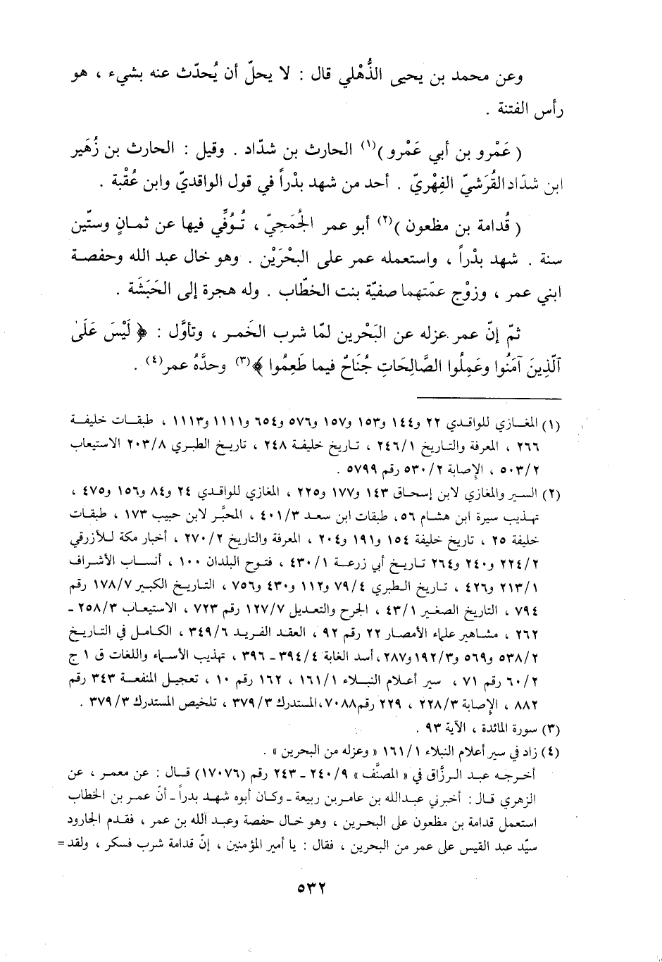 [1] المغازي للواقدي 22 و 144 و 153 و 157 و 576 و 654 و 1111 و 1113، طبقات خليفة 266، المعرفة والتاريخ 1/ 246، تاريخ خليفة 248، تاريخ الطبري 8/ 203 الاستيعاب 2/ 503، الإصابة 2/ 530 رقم 5799.