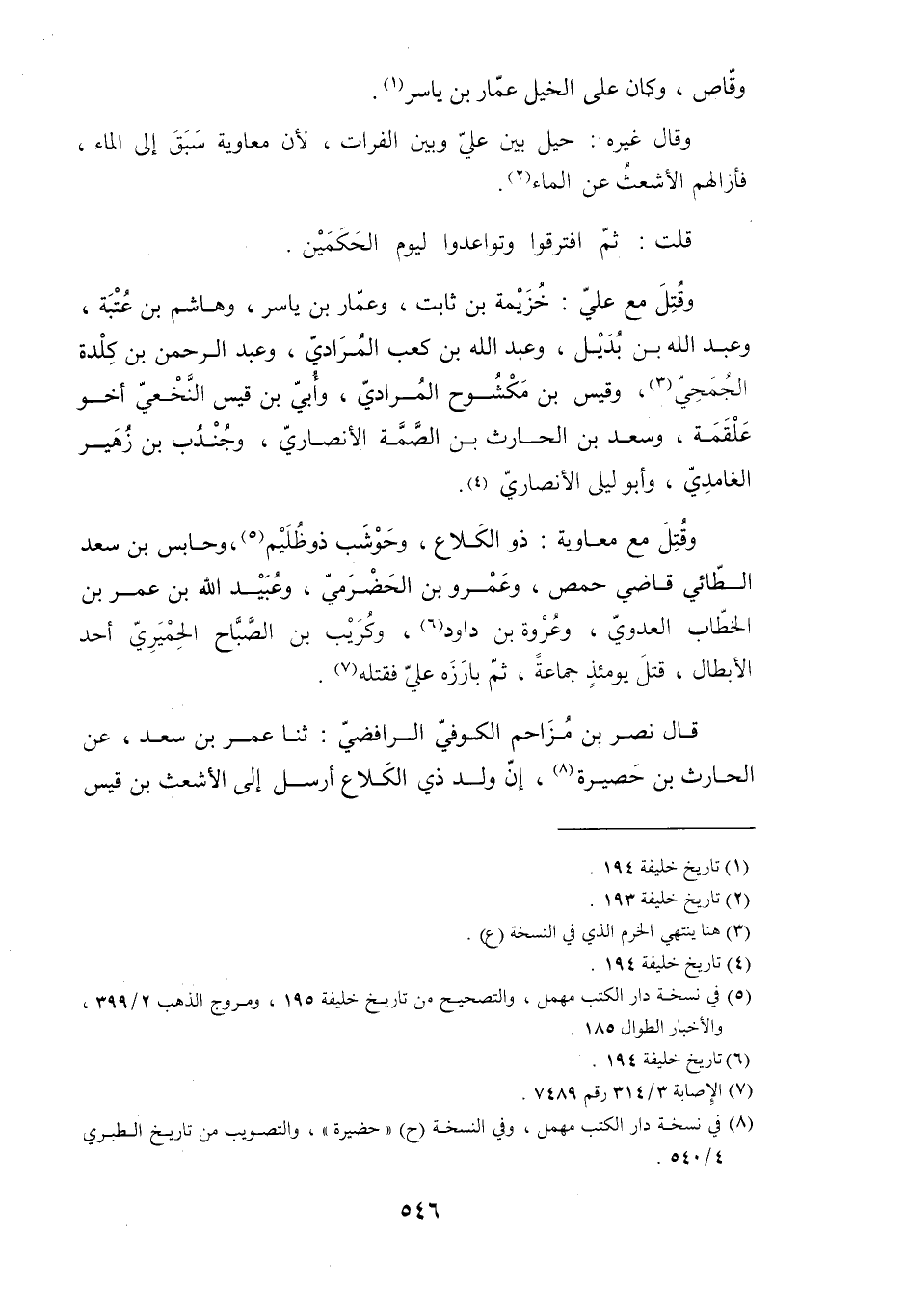قَالَ نَصْرُ بْنُ مُزَاحِمٍ الْكُوفِيُّ الرَّافِضِيُّ: ثنا عُمَرُ بْنُ سَعْدٍ، عن الحارث بن حصيرة [8] ، وإنّ وَلَدَ ذِي الْكَلاعِ أَرْسَلَ إِلَى الأَشْعَثِ بْنِ قيس