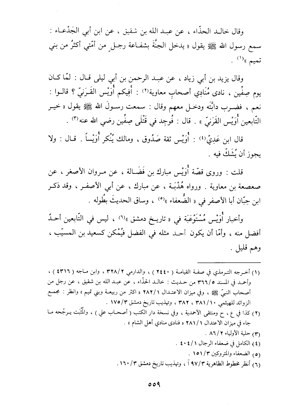 وأخبار أُوَيْس مُسْتَوْعَبة فِي «تاريخ دمشق» [6] ، ليس فِي التابعين أحدٌ أفضل منه، وأمّا أن يكون أحد مثله فِي الفضل فيُمْكن كسعيد بن المسيّب، وهم قليل.
