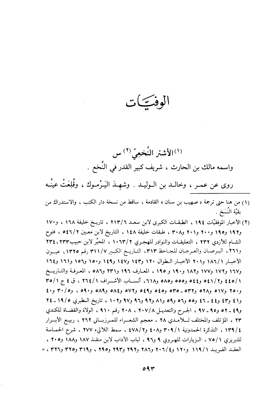 [2] الأخبار الموفقيّات 194، الطبقات الكبرى لابن سعد 6/ 213، تاريخ خليفة 168، و 170 و 192 و 195 و 200 و 201 و 308، طبقات خليفة 148، التاريخ لابن معين 2/ 546، فتوح الشام للأزدي 232، التعليقات والنوادر للهجري 2/ 1063، المحبّر لابن حبيب 233، 234 و 261، البرصان والعرجان للجاحظ 313، التاريخ الكبير 7/ 311 رقم 1325، عيون الأخبار 1/ 186 و 201 الأخبار الطوال 120 و 143 و 147 و 149 و 150 و 156 و 161 و 164 و 167 و 172 و 177 و 182 و 190 و 195، المعارف 196 و 231 و 586، المعرفة والتاريخ 1/ 445 و 2/ 541 و 544 و 555 و 585 و 618، أنساب الأشراف 1/ 264، ق 4 ج 1/ 35 و 250 و 517 و 528 و 532- 535 و 545 و 549 و 572 و 584 و 589 و 590، و 5/ 30 و 40 و 41 و 43 و 44- 46 و 55 و 56 و 59 و 81 و 92 و 96 و 97 و 102، تاريخ الطبري 5/ 19- 24 و 49- 52 و 95- 97، الجرح والتعديل 8/ 207، 208 رقم 910، الولاة والقضاة للكندي 23، المؤتلف والمختلف للآمدي 28، معجم الشعراء للمرزباني 262، ربيع الأبرار 4/ 139، التذكرة الحمدونية 1/ 309 و 408 و 2/ 478، سمط اللآلئ 277، شرح الحماسة للتبريزي 1/ 75، الزيارات للهروي 9 و 96، لباب الآداب لابن منقذ 187 و 188 و 205، العقد الفريد 1/ 119 و 120 و 4/ 206 و 286 و 292 و 293 و 295، و 319 و 325 و 326،