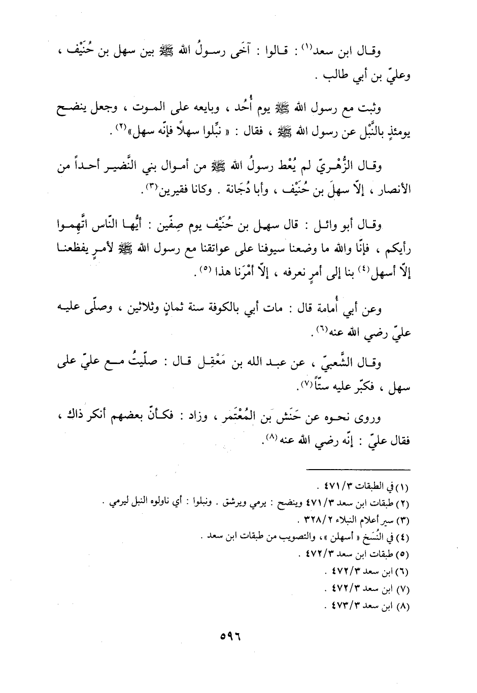 وقال ابن سعد [1] : قَالُوا: آخَى رَسُولُ اللَّهِ صَلَّى اللَّهُ عَلَيْهِ وَسَلَّمَ بين سهل بْن حُنَيْف، وعليّ بْن أبي طَالِب.