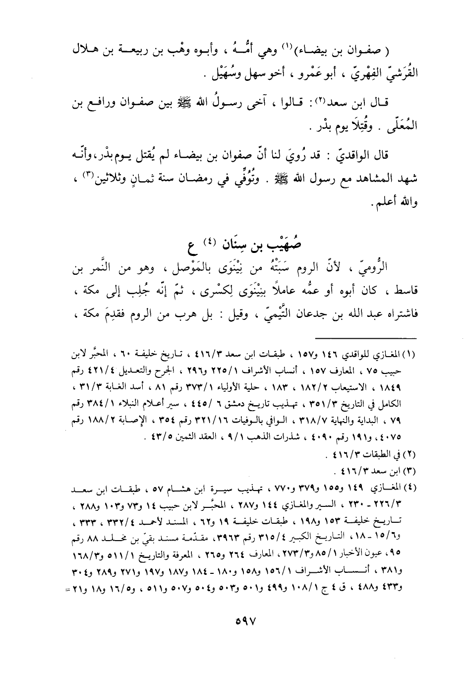 [4] المغازي 149 و 155 و 379 و 770، تهذيب سيرة ابن هشام 57، طبقات ابن سعد 3/ 226- 230، السير والمغازي 144 و 287، المحبّر لابن حبيب 14 و 73 و 103 و 288، تاريخ خليفة 153 و 198، طبقات خليفة 19 و 62، المسند لأحمد 4/ 332، 333، و 6/ 15- 18، التاريخ الكبير 4/ 315 رقم 3963، مقدّمة مسند بقيّ بن مخلد 88 رقم 95، عيون الأخبار 1/ 85 و 3/ 273، المعارف 264 و 265، المعرفة والتاريخ 1/ 511 و 3/ 168 و 381، أنساب الأشراف 1/ 156 و 158 و 180- 184 و 187 و 197 و 271 و 289 و 304 و 433 و 488، ق 4 ج 1/ 108 و 499 و 501 و 503 و 504 و 507 و 511، و 5/ 16 و 18 و 21