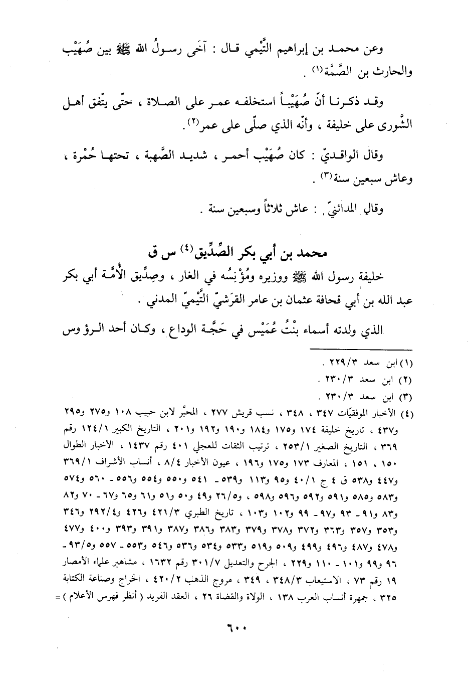 وعن مُحَمَّد بْن إِبْرَاهِيم التَّيْميّ قَالَ: آخَى رَسُولُ اللَّهِ صَلَّى اللَّهُ عَلَيْهِ وسلم بين صُهَيْب والحارث بْن الصِّمَّة [1] .