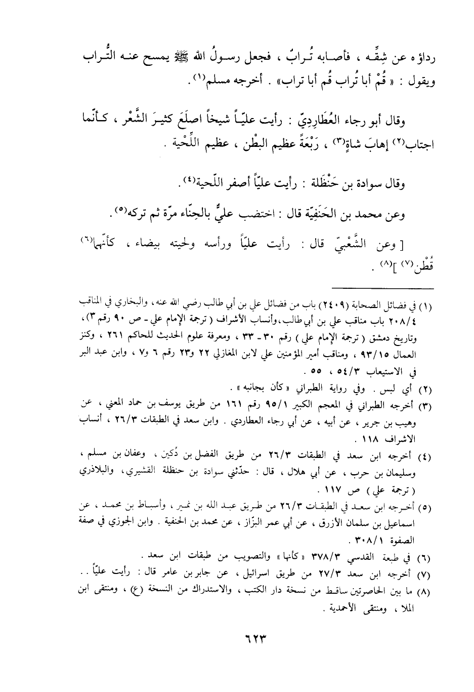 [7] أخرجه ابن سعد 3/ 27 من طريق إسرائيل، عن جابر بن عامر قال: رأيت عليّا.