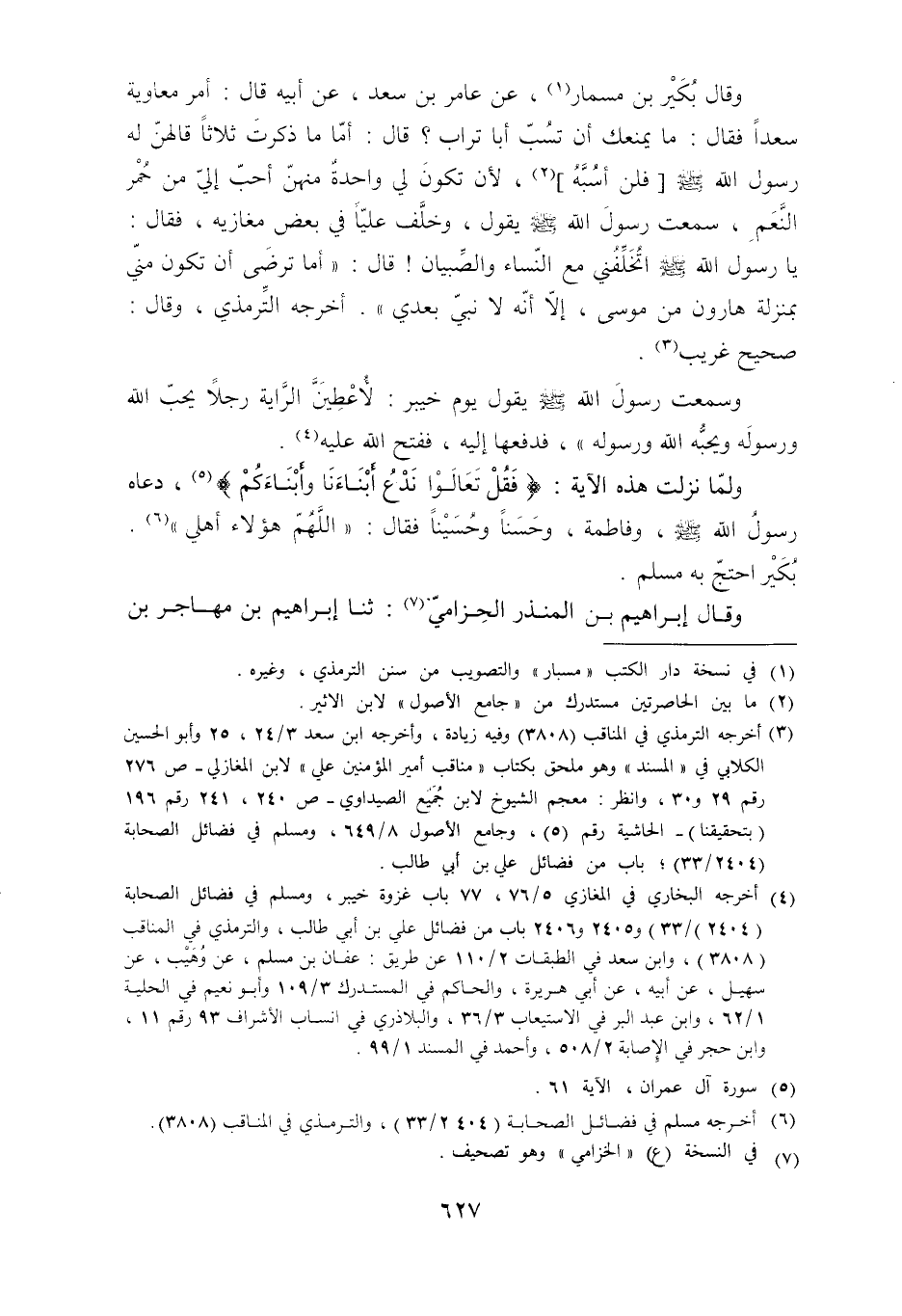 [3] أخرجه الترمذي في المناقب (3808) وفيه زيادة، وأخرجه ابن سعد 3/ 24، 25 وأبو الحسين الكلابي في «المسند» وهو ملحق بكتاب «مناقب أمير المؤمنين علي» لابن المغازلي- ص 276 رقم 29 و 30، وانظر: معجم الشيوخ لابن جميع الصيداوي- ص 240، 241 رقم 196 (بتحقيقنا) - الحاشية رقم (5) ، وجامع الأصول 8/ 649، ومسلم في فضائل الصحابة (2404/ 33) ، باب من فضائل علي بن أبي طالب.