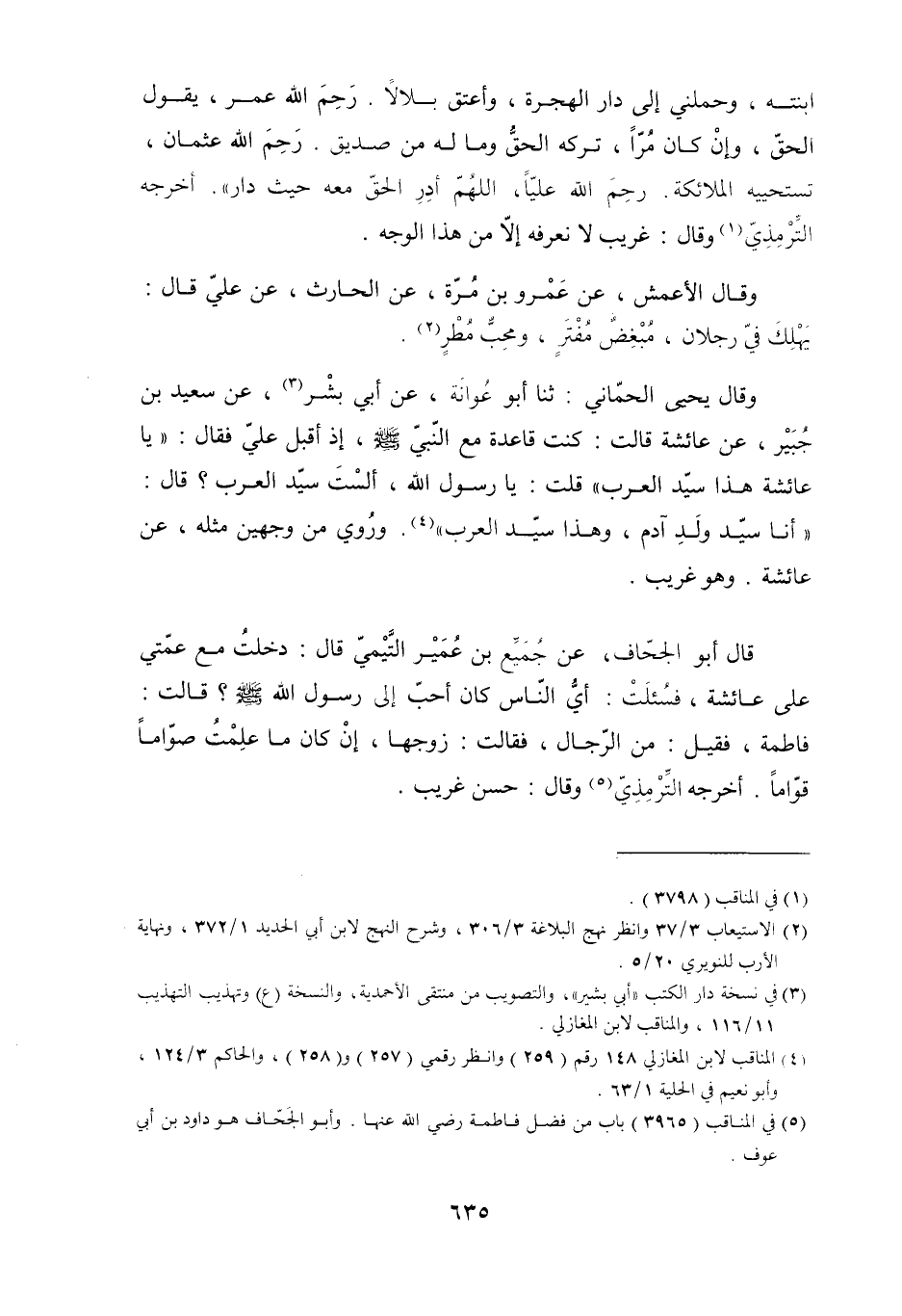 [5] في المناقب (3965) باب من فضل فاطمة رضي الله عنها. وأبو الجحّاف هو داود بن أبي عوف.