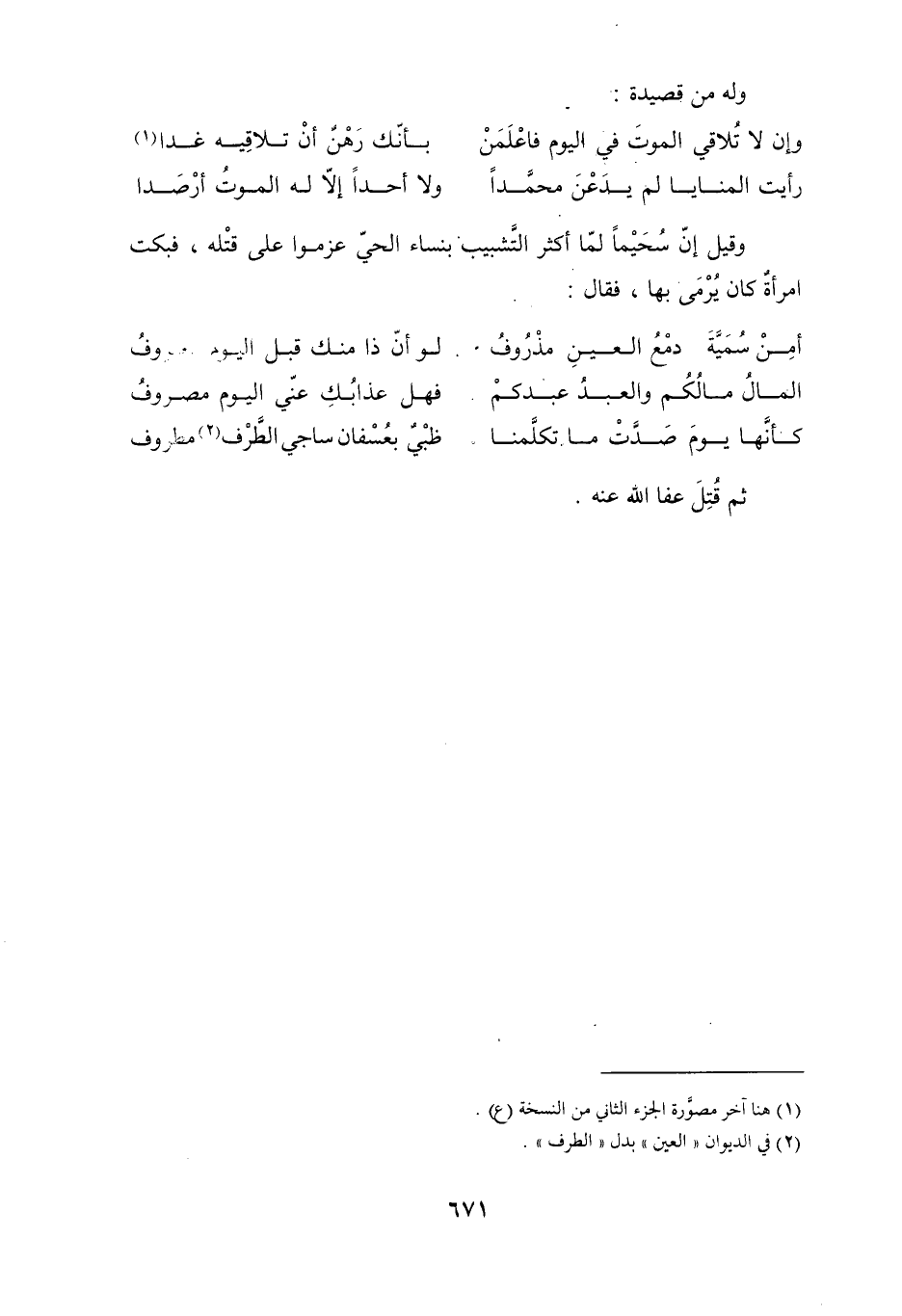 أمِنْ سُمَيَّةَ دمْعُ العين مذْرُوفُ ... لو أنّ ذا منك قبل اليوم معروفُ