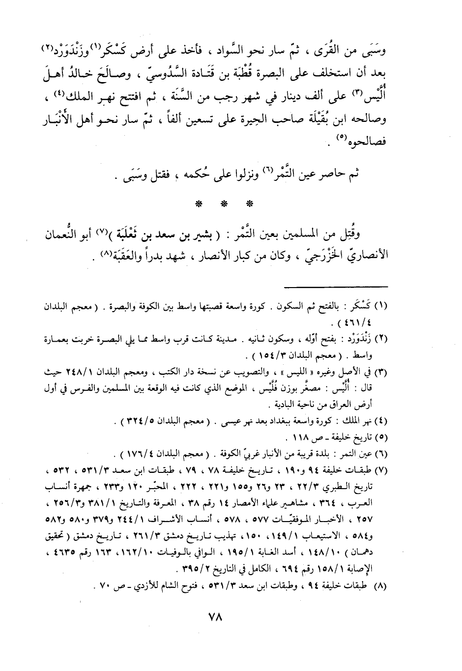 [8] طبقات خليفة 94، وطبقات ابن سعد 3/ 531، فتوح الشام للأزدي- ص 70.