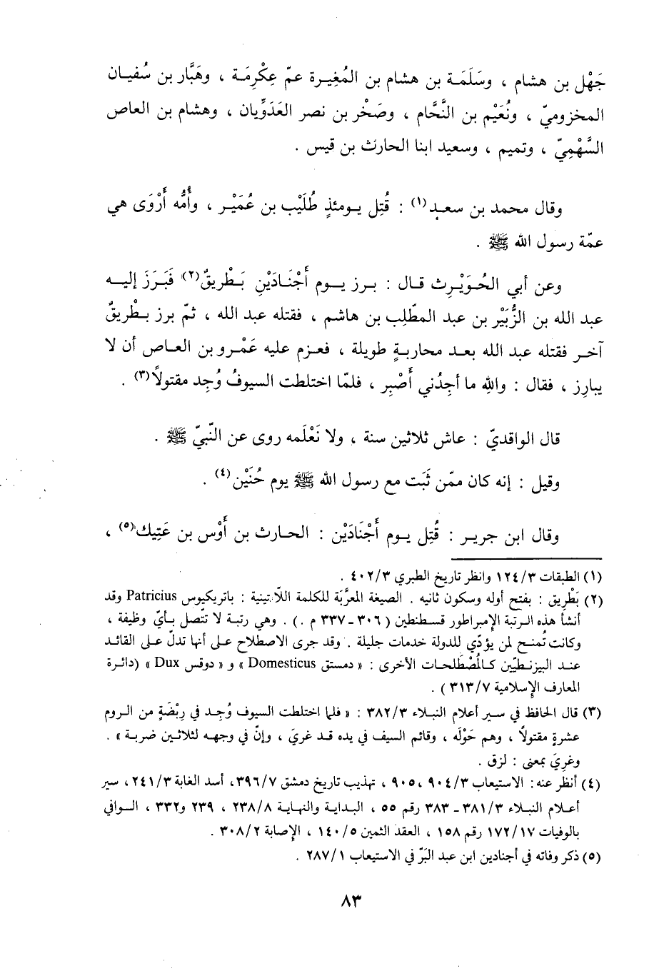 [5] ذكر وفاته في أجنادين ابن عبد البرّ في الاستيعاب 1/ 287.