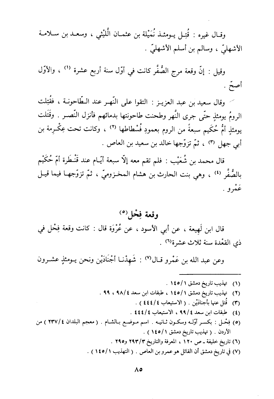[5] فحل: بكسر أوّله وسكون ثانيه. اسم موضع بالشام. (معجم البلدان 4/ 237) من الأردن. (تهذيب تاريخ دمشق 1/ 145) .