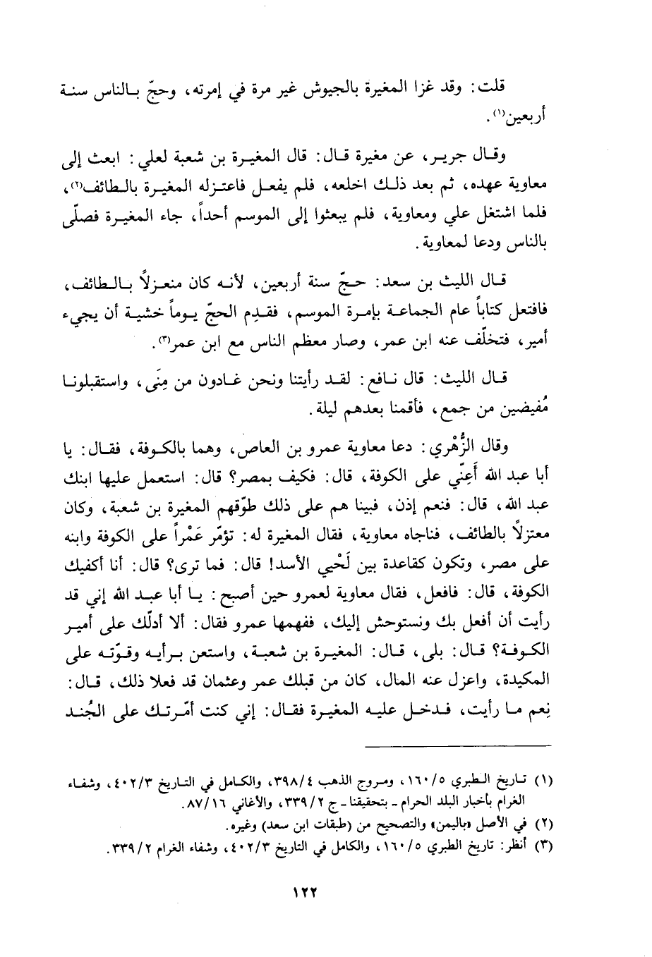 [1] تاريخ الطبري 5/ 160، ومروج الذهب 4/ 398، والكامل في التاريخ 3/ 402، وشفاء الغرام بأخبار البلد الحرام- بتحقيقنا- ج 2/ 339، والأغاني 16/ 87.