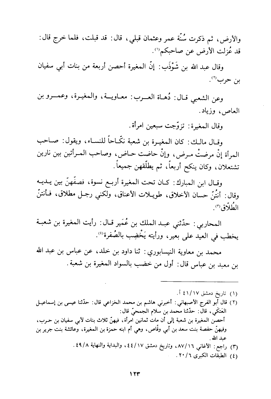 وَقَالَ عَبْدُ اللَّهِ بْنُ شَوْذَبٍ: إِنَّ الْمُغِيرَةَ أَحْصَنَ أَرْبَعَةً مِنْ بَنَاتِ أَبِي سُفْيَانَ بْنِ حَرْبٍ [2] .