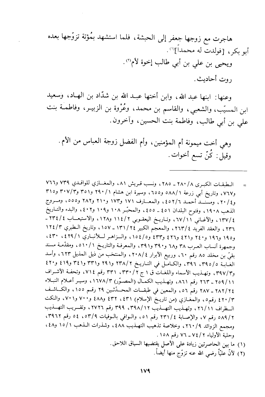 [ () ] الطبقات الكبرى 8/ 280- 285، ونسب قريش 81، والمغازي للواقدي 739 و 766 و 767، وتاريخ أبي زرعة 1/ 588 و 655، وسيرة ابن هشام 1/ 290 و 351 و 3/ 307 و 315 و 4/ 20، ومسند أحمد 6/ 452، والمعارف 171 و 173 و 210 و 282 و 555، ومروج الذهب 1908، وفتوح البلدان 451- 455، والمحبّر 108 و 109 و 402، والبدء والتاريخ 4/ 137، والأغاني 11/ 67، وتاريخ اليعقوبي 2/ 114 و 128، والاستيعاب 4/ 234- 236، والعقد الفريد 4/ 263، والمعجم الكبير 24/ 131- 157، وتاريخ الطبري 3/ 124 و 195 و 196 و 240 و 421 و 426 و 433 و 5/ 154، والزاهر للأنباري 1/ 429، 430، وجمهرة أنساب العرب 38 و 68 و 390 و 391، والمعرفة والتاريخ 1/ 510، ومقدّمة مسند بقيّ بن مخلد 85 رقم 60، وربيع الأبرار 4/ 208، والمنتخب من ذيل المذيل 623، وأسد الغابة 5/ 395، 396، والكامل في التاريخ 2/ 238 و 291 و 331 و 341 و 419 و 420 و 3/ 397، وتهذيب الأسماء واللغات ق 1 ج 2/ 330، 331 رقم 714، وتحفة الأشراف 11/ 259- 263 رقم 861، وتهذيب الكمال (المصوّر) 3/ 1678، وسير أعلام النبلاء 24/ 282- 287 رقم 56، والمعين في طبقات المحدّثين 29 رقم 155، والكاشف 3/ 420 رقم 5، والمغازي (من تاريخ الإسلام) 431، 432 و 488 و 700 و 701، والنكت الظراف 11/ 26، وتهذيب التهذيب 12/ 398، 399 رقم 2726، وتقريب التهذيب 2/ 589 رقم 7، والإصابة 4/ 231 رقم 51، والوافي بالوفيات 9/ 53، 54 رقم 3962، ومجمع الزوائد 9/ 260، وخلاصة تذهيب التهذيب 488، وشذرات الذهب 1/ 15 و 48، وحلية الأولياء 2/ 74- 76 رقم 158.
