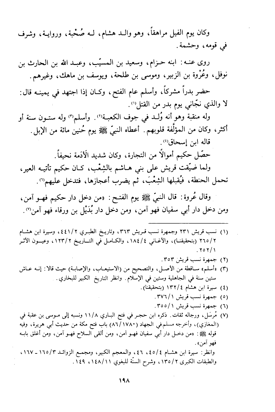 وَكَانَ يَوْم الفيل مراهقًا، وَهُوَ والد هشام، لَهُ صُحْبة، ورواية، وشرف في قومه، وحشمة.
