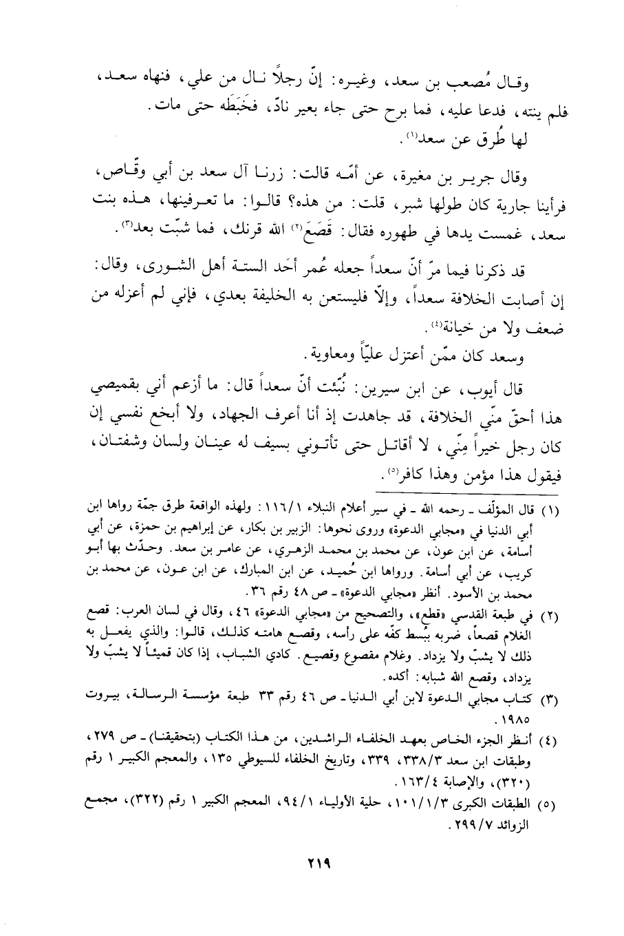 قَالَ أيوب، عَن ابن سيرين: نُبئت أن سعدًا قَالَ: مَا أزعم أني بقميصي هَذَا أحق مني الخلافة، قَدْ جاهدت إذ أنا أعرف الجهاد، وَلَا أبخع نفسي إن كَانَ رَجُلٌ خيرًا مِني، لَا أقاتل حَتَّى تأتوني بسيف لَهُ عينان ولسان وشفتان، فيقول هَذَا مؤمن وَهَذَا كافر [5] .