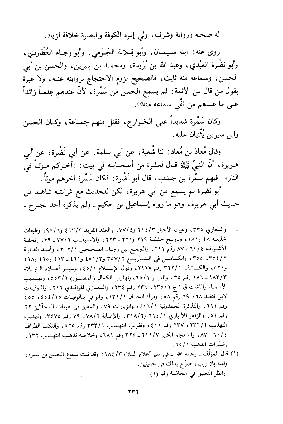 [1] قال المؤلّف- رحمه الله- في سير أعلام النبلاء 3/ 184: وقد ثبت سماع الحسن بن سمرة، ولقيه بلا ريب، صرّح بذلك في حديثين.