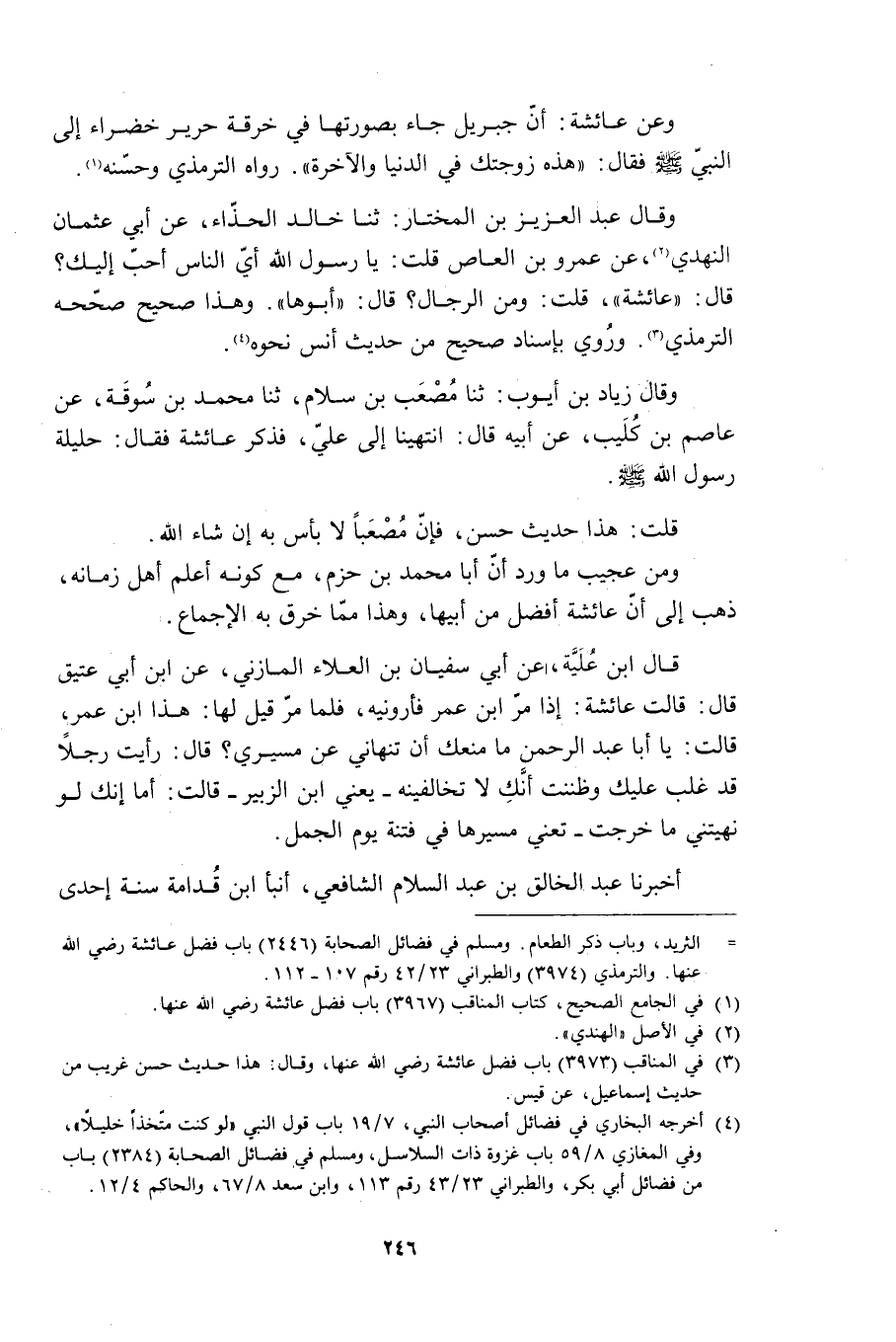 [1] في الجامع الصحيح، كتاب المناقب (3967) باب فضل عائشة رضي الله عنها.