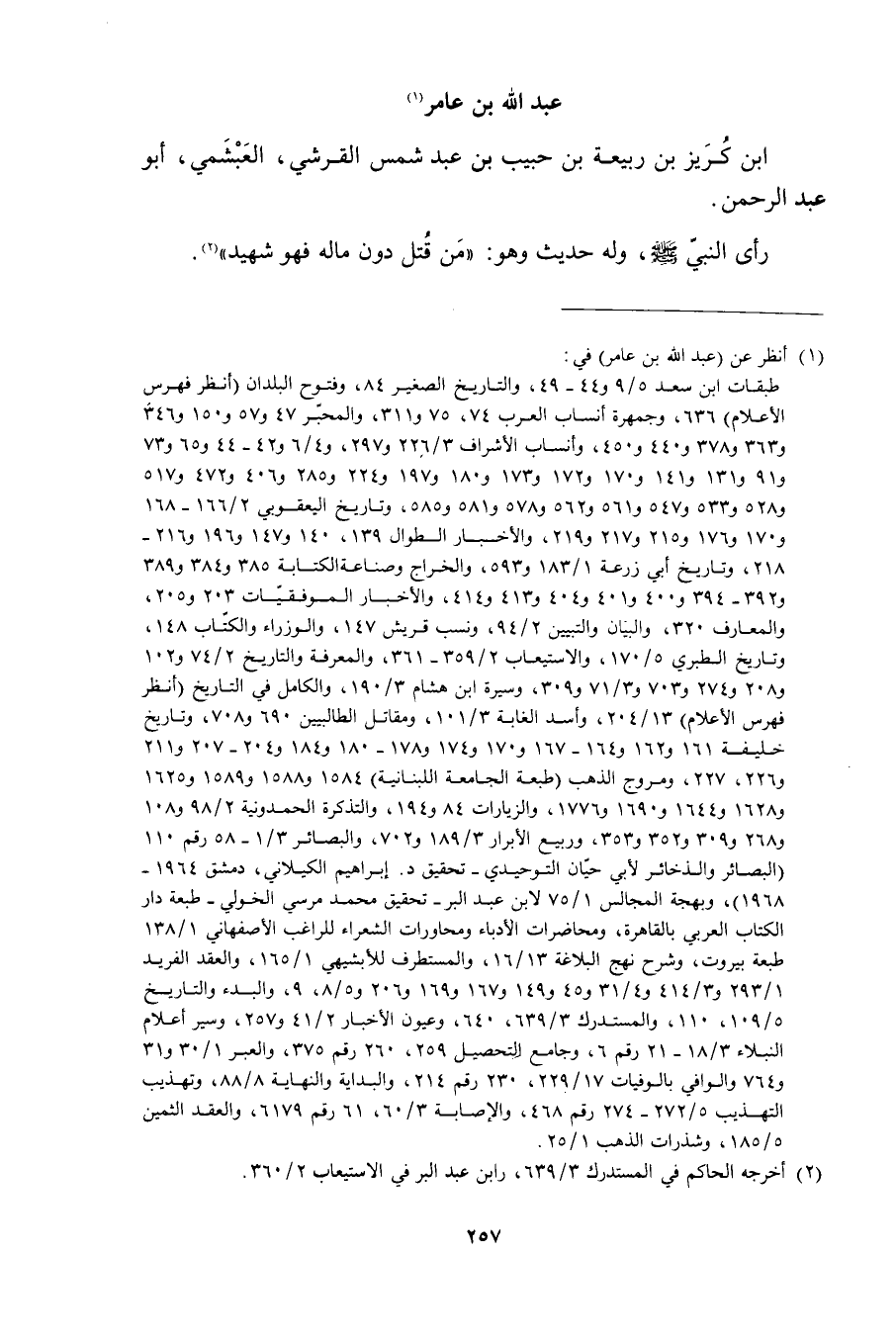 [2] أخرجه الحاكم في المستدرك 3/ 639، وابن عبد البر في الاستيعاب 2/ 360.