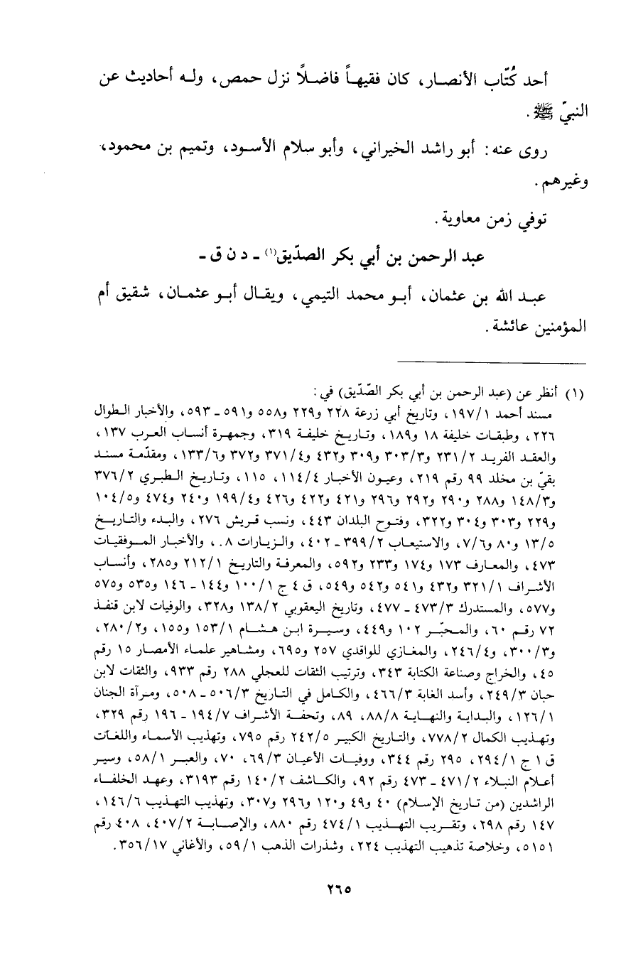[1] انظر عن (عبد الرحمن بن أبي بكر الصّدّيق) في: