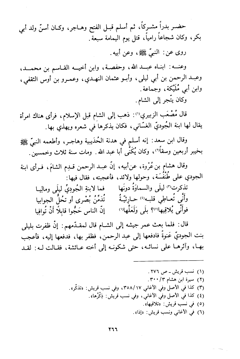 [4] كذا في الأصل وفي الأغاني، وفي نسب قريش: ذكرها» .