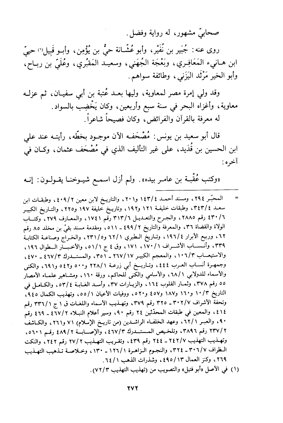 «وكتب عُقْبة بن عامر بيده» . وَلَمْ أزل أسمع شيوخنا يقولون: إنه