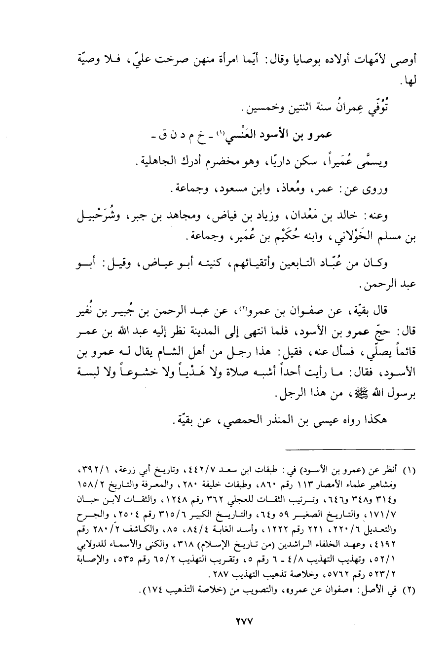 [2] في الأصل: «صفوان عن عمرو» ، والتصويب من (خلاصة التذهيب 174) .