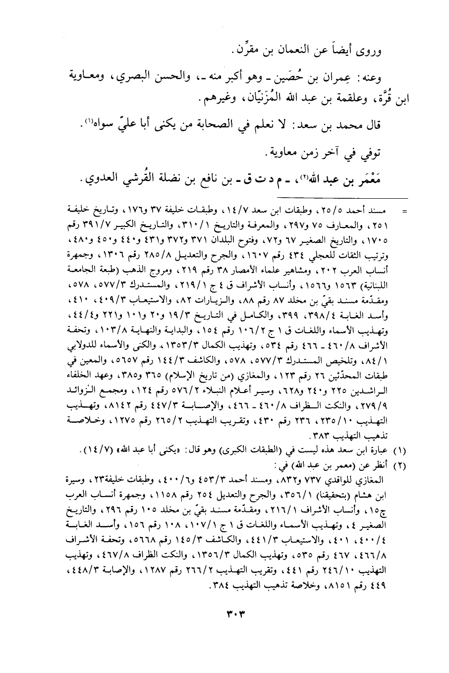 [1] عبارة ابن سعد هذه ليست في (الطبقات الكبرى) وهو قال: «يكنى أبا عبد الله» (7/ 14) .