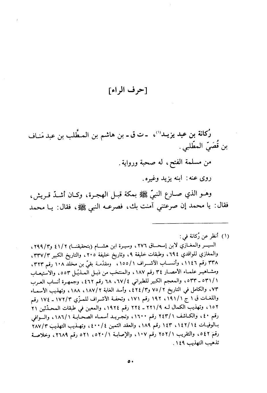 وهو الّذي صارع النبيّ صلى الله عليه وآله وَسَلَّمَ بِمَكَّةَ قَبْلَ الْهِجْرَةِ، وَكَانَ أَشَدَّ قُرَيْشٍ، فَقَالَ: يَا مُحَمَّدُ إِنْ صَرَعْتَنِي آمَنْتُ بِكَ، فصرعه النبي صلى الله عليه وآله وسلم، فقال: يا محمد