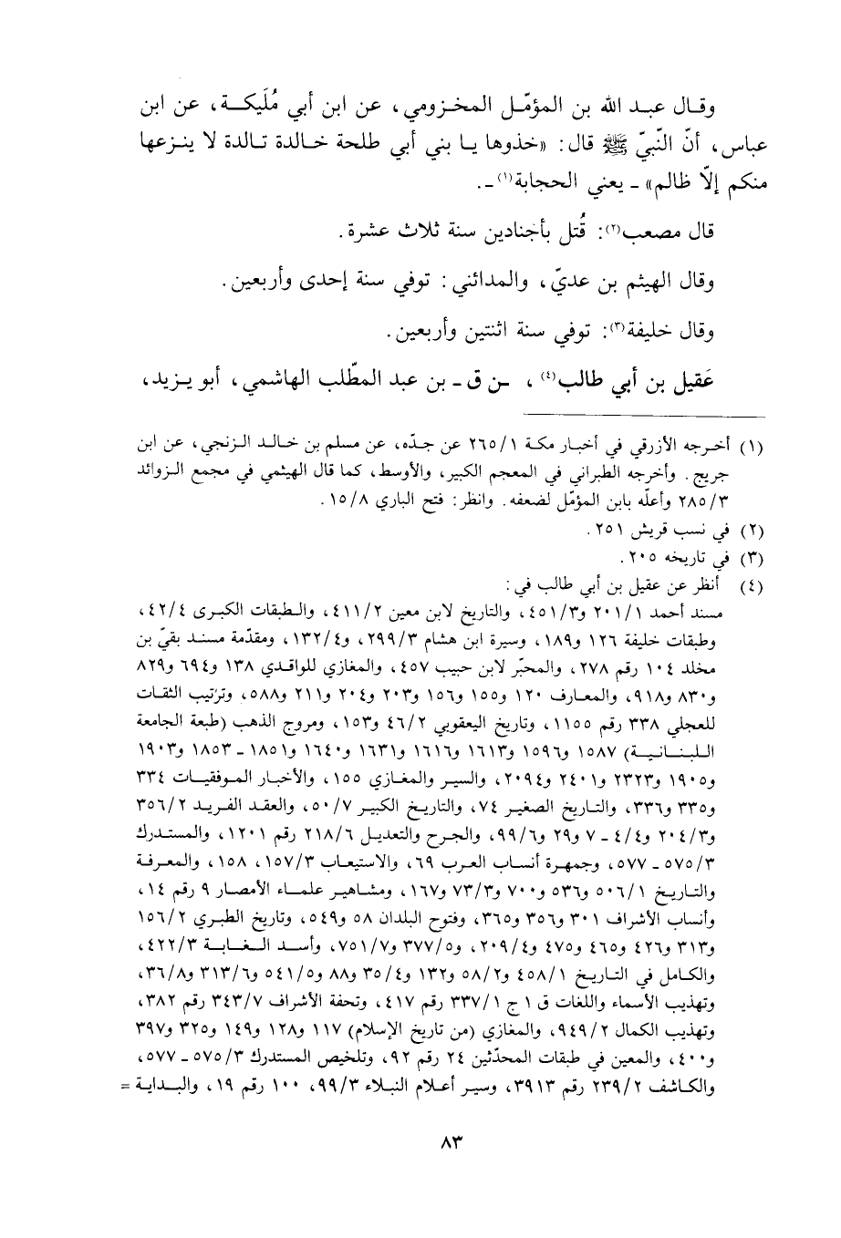 عَقِيلُ بْنُ أَبِي طَالِبِ [4] ، - ن ق- بْنِ عَبْدِ الْمُطَّلِبِ الْهَاشِمِيُّ، أَبُو يزيد،