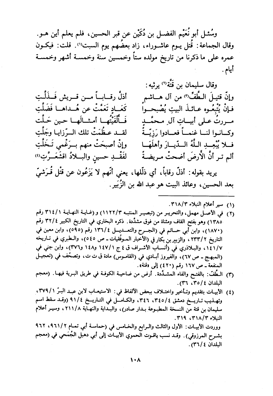 [4] الأبيات بتقديم وتأخير واختلاف ببعض الألفاظ في: الاستيعاب لابن عبد البرّ 1/ 379، وتهذيب تاريخ دمشق 4/ 345، 346، والكامل في التاريخ 4/ 91 (وقد سقط اسم سليمان بن قتة من النسخة المطبوعة بدار صادر) ، والبداية والنهاية 8/ 211، وسير أعلام النبلاء 3/ 318، 319.