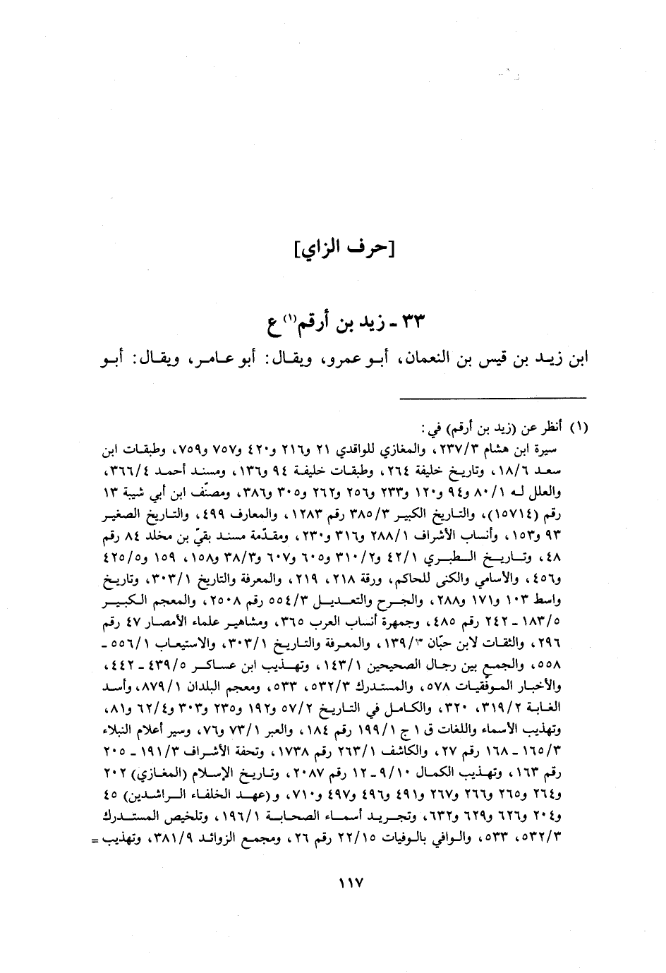 33- زيد بن أرقم [1] ع ابن زَيْدِ بْنِ قَيْسِ بْنِ النُّعْمَانِ، أَبُو عَمْرٍو، ويقال: أبو عامر، ويقال: أبو