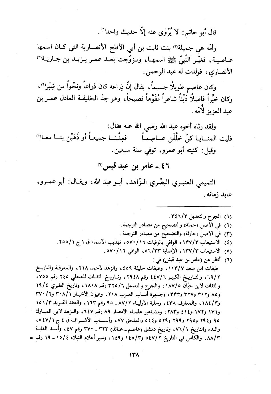 46- عَامِرُ بْنُ عَبْدِ قَيْسٍ [6] التَّمِيمِيُّ الْعَنْبَرِيُّ الْبَصْرِيُّ الزَّاهِدُ، أَبُو عَبْدِ الله، ويقال: أبو عمرو، عابد زمانه.