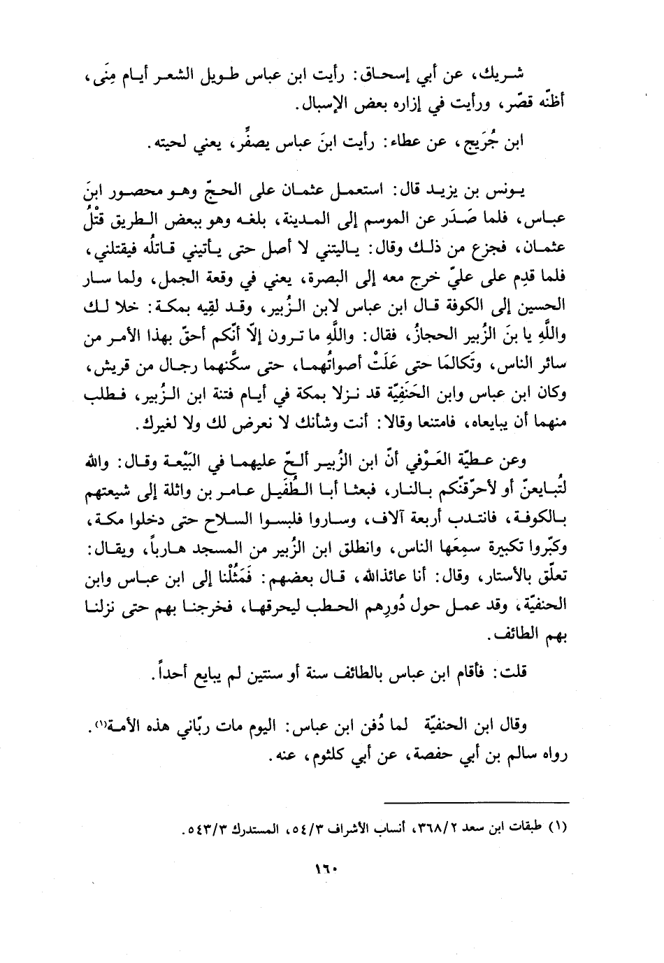 وَقَالَ ابْنُ الْحَنَفِيَّةِ لَمَّا دُفِنَ ابْنُ عَبَّاسٍ: الْيَوْمُ مَاتَ رَبَّانِيُّ هَذِهِ الأُمَّةِ [1] .