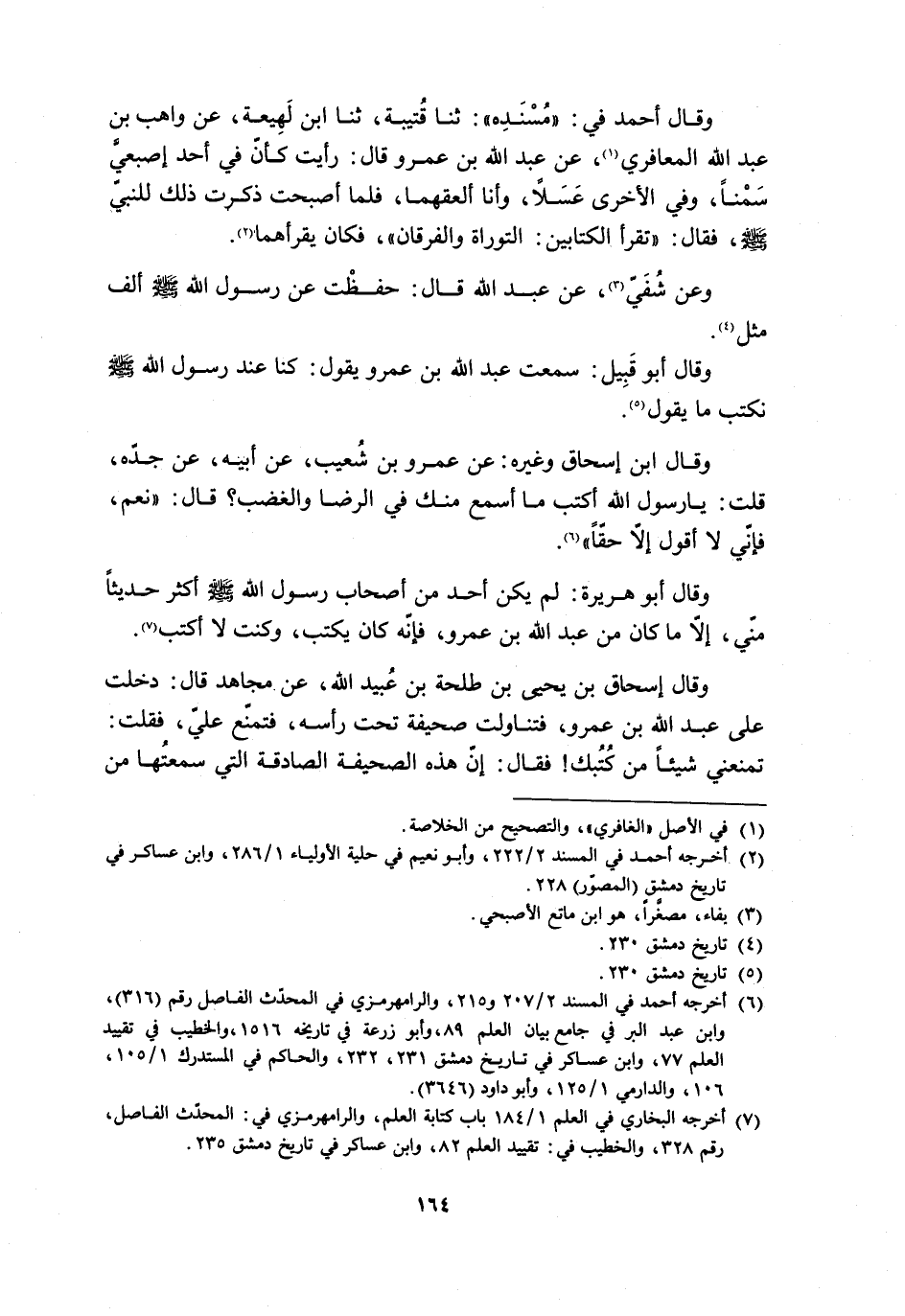 [6] أخرجه أحمد في المسند 2/ 207 و 215، والرامهرمزيّ في المحدّث الفاضل رقم (316) ، وابن عبد البر في جامع بيان العلم 89، وأبو زرعة في تاريخه 1516، والخطيب في تقييد العلم 77، وابن عساكر في تاريخ دمشق 231، 232، والحاكم في المستدرك 1/ 105، 106، والدارميّ 1/ 125، وأبو داود (3646) .