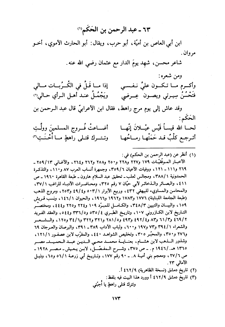 63- عَبْدُ الرَّحْمَنِ بْنُ الْحَكَمِ [1] ابْنُ أَبِي الْعَاصِ بْنِ أُمَيَّةَ، أَبُو حَرْبٍ، وَيُقَالُ: أَبُو الْحَارِثِ الأُمَوِيُّ، أَخُو مَرْوَانَ.