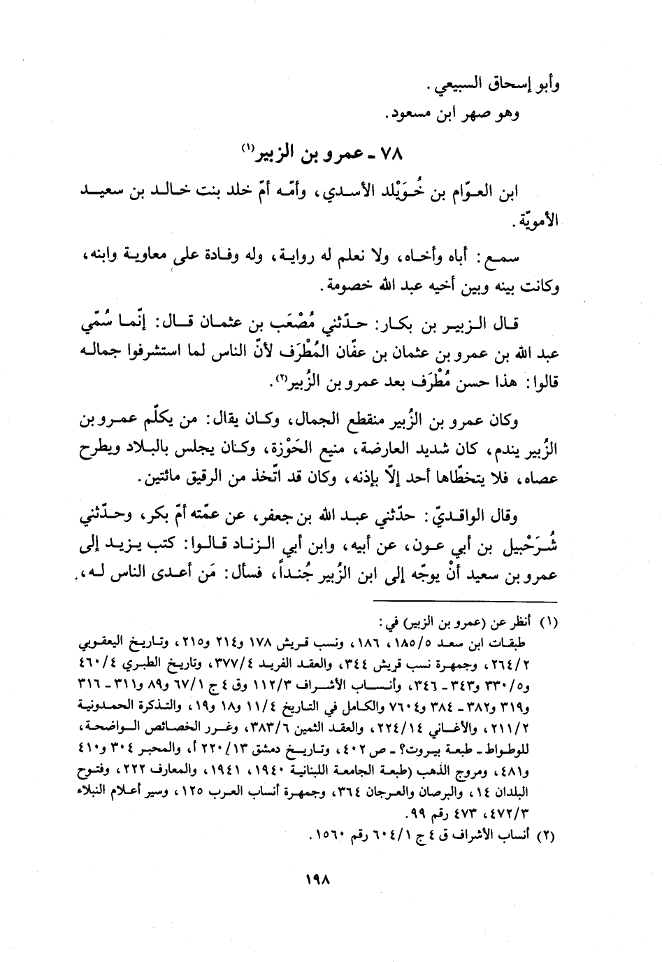 78- عمرو بن الزبير [1] ابن الْعَوَّامِ بْنِ خُوَيْلِدٍ الأَسَدِيُّ، وأمه أُمُّ خَلِدِ بِنْتِ خَالِدِ بْنِ سَعِيدٍ الْأُمَوِيَّةِ.
