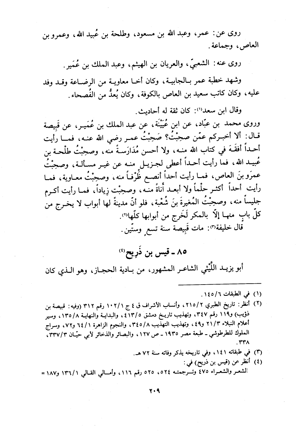 85- قَيْسُ بْنُ ذَرِيحٍ [4] أَبُو يَزِيدَ اللَّيْثِيُّ الشاعر الْمَشْهُورُ، من بادية الحجاز، وهو الّذي كان