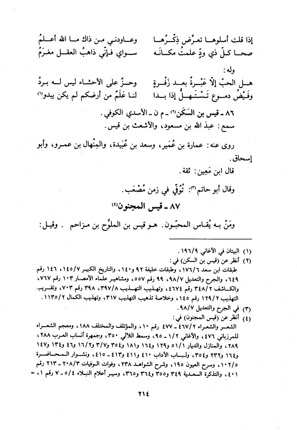 87- قَيْسُ الْمَجْنُونُ [4] وَمَنْ بِهِ يُقَاسُ الْمُحِبُّونَ. هُوَ قَيْسُ بْنُ الْمُلَوِّحِ بْنِ مُزَاحِمٍ. وقيل: