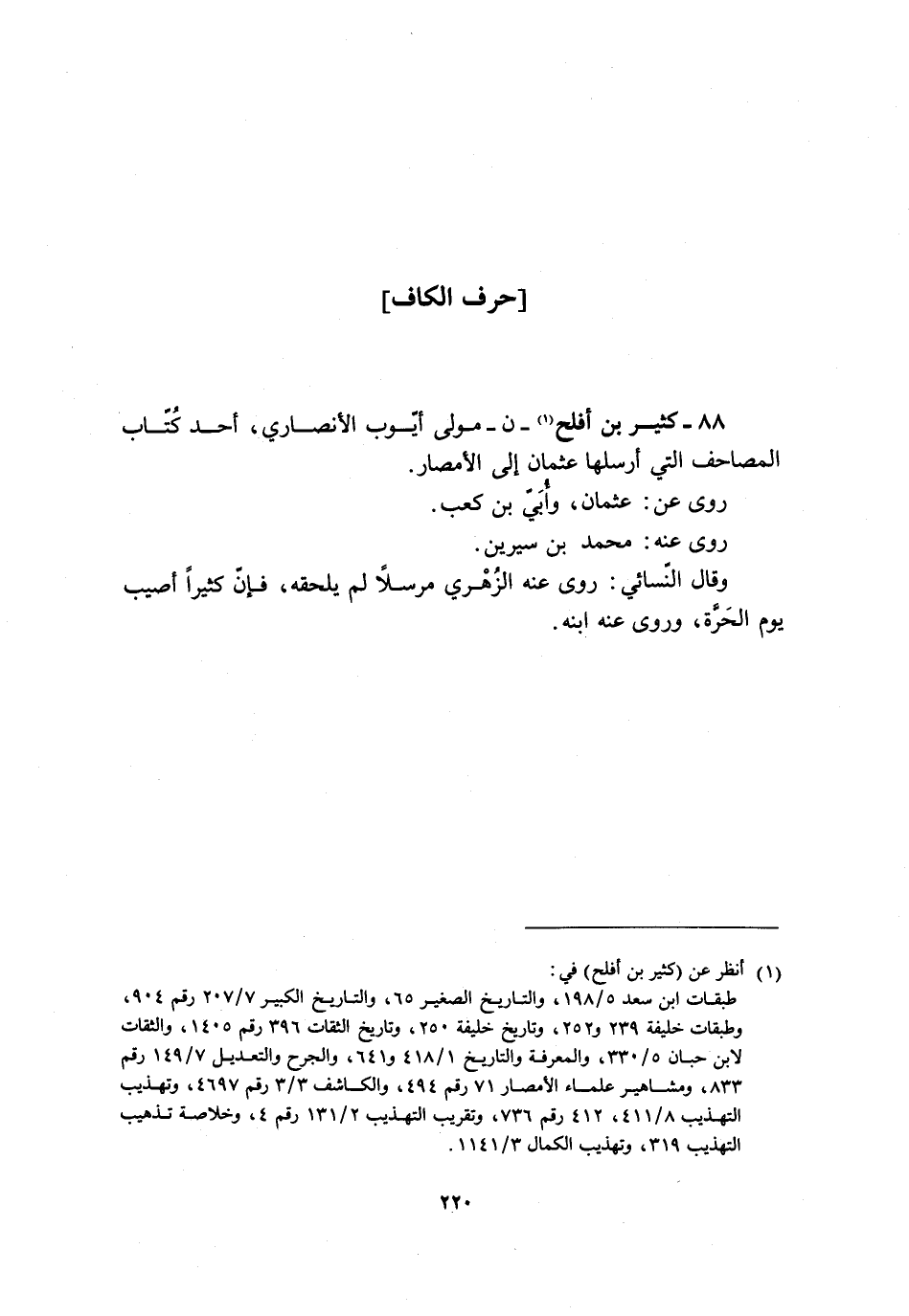 88- كَثِيرُ بْنُ أَفْلَحَ [1]- ن- مَوْلَى أَيُّوبَ الأَنْصَارِيِّ، أَحَدُ كُتَّابِ الْمَصَاحِفِ الَّتِي أَرْسَلَهَا عُثْمَانُ إِلَى الأَمَصَارِ.