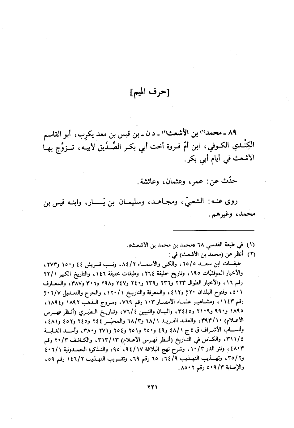89- محمد [1] بن الأشعث [2]- د ن- بن قيس بن معديكرب، أبو القاسم الكندي الكوفي، ابْنُ أُمِّ فَرْوَةَ أُخْتِ أَبِي بَكْرٍ الصِّدِّيقِ لِأَبِيهِ، تَزَوَّجَ بِهَا الأَشْعَثُ فِي أَيَّامِ أَبِي بَكْرٍ.